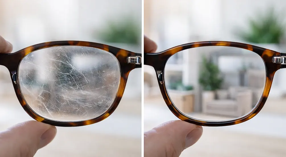 Even small scratches and coating wear scatter light and reduce contrast. That’s why lenses can feel permanently “dirty.”